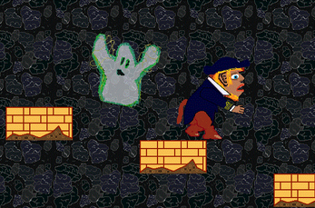 Seperated from your crew, and captured by an evil witch from the future named Tyna, your soul has been placed in the body of your pet monkey.